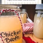 - Remove the chicken from the broth. Save it for soup or use it for another recipe. Strain the broth into another container.